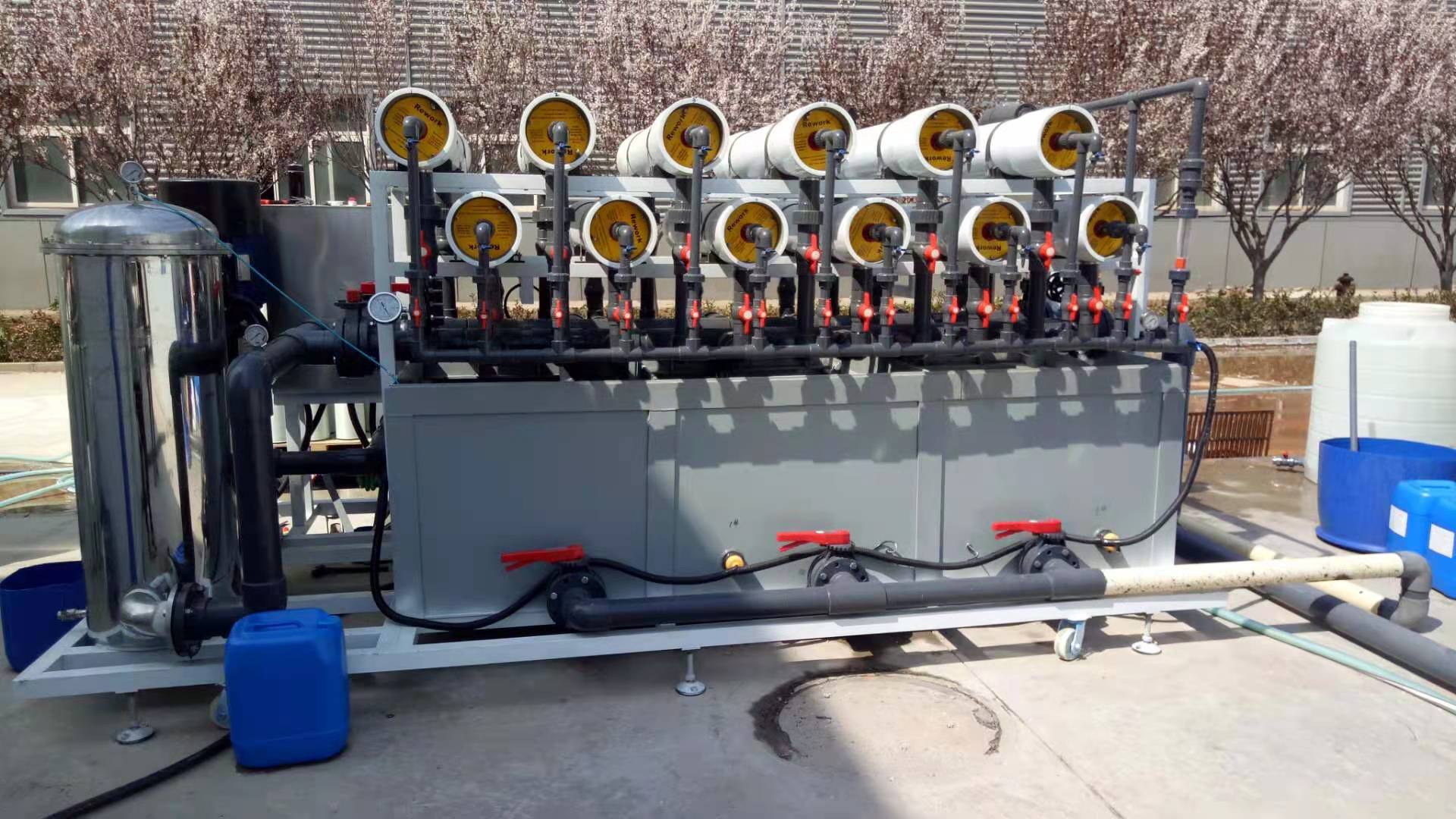 该项目属于唐山市政旗下污水处理厂,收集个管网污水进行深度处理后,达到中水回用标准,消毒加压进入市政中水管线,日处理量1000 m³,本设备利用循环药剂清洗系统处理膜。使膜过水量和处理水质还原之前状态。
