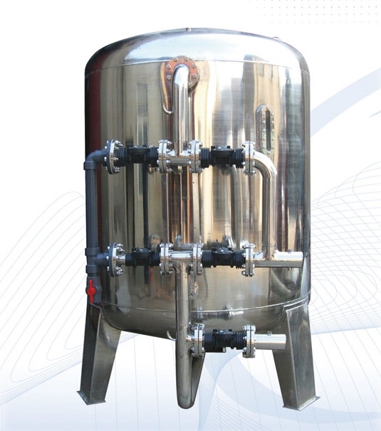 多介质过滤器是利用一种或几种过滤介质,在一定的压力下把浊度较高的水通过一定厚度的粒状或非粒材料,从而有效的除去悬浮杂质使水澄清的过程,常用的滤料有石英砂,无烟煤,锰砂等,主要用于水处理除浊,软化水,纯水的前级预处理等,出水浊度可达3度以下。