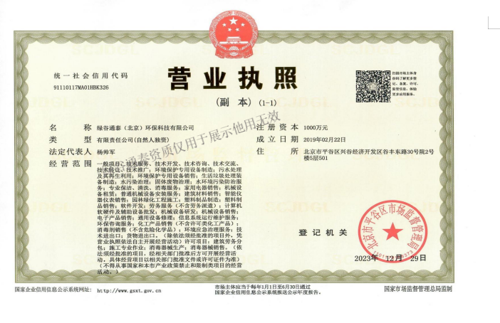 绿谷通泰(北京)环保科技有限公司(简称:绿谷通泰)成立于2019年,公司地址;北京市平谷区谷丰东路30号院锐E空间产业园。