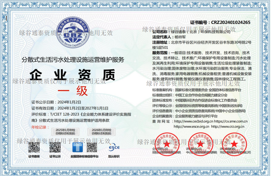 绿谷通泰(北京)环保科技有限公司,具备分散式生活污水处理设施运营维护服务